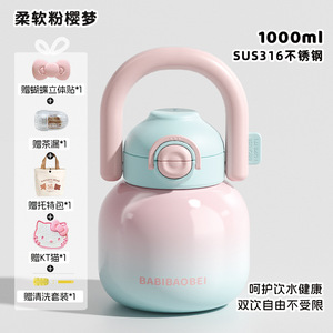 芭芘宝贝水杯子保温杯大肚杯吸管杯拎拎壶吨吨杯保冷大容量女学生