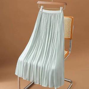デザインヨーロッパスタイルの流れるシフォンスカート女性の夏の新しいミルクパールスカート気質ヤナギしわプリーツスカート