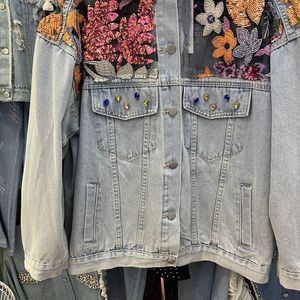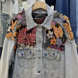 ヨーロッパステーション 2025 新しい夏スタイルヘビーカラースパンコールルーズスリムデニムコートジャケットトップ女性用