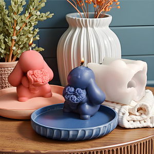 ウサギの形のシリカゲルの金型は花の形のDIYを抱いて香薫のろうそくの祝日の家庭の日常の置物の装飾を作ります。