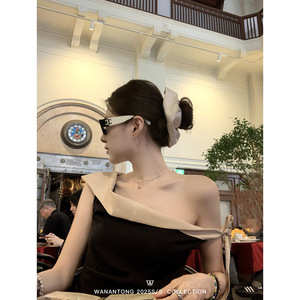 WANAN 罗马假日 自带美感斜肩系带上衣女夏季露肩上衣