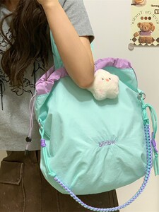 新しいコントラストカラー巾着クロスボディバッグ 2025 ニッチカラーマッチング学生ショルダーバッグカジュアル多用途女性の軽量バッグ