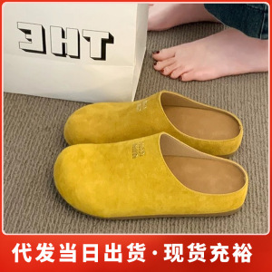 高級感包頭半スリッパの女性モデル2025新型レトロなベーケン靴のフラットスリッパのファッション
