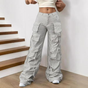 クロスボーダーヨーロッパとアメリカの女性用タクティカルオーバーオール、機能的なアメリカンマルチポケットトレンディなハイストリートワイドレッグカジュアルパンツ8086