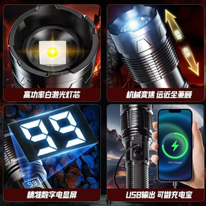 クロスボーダー XHP70 懐中電灯 USB 充電伸縮ズーム電源表示屋外強力な光多機能懐中電灯