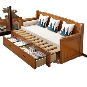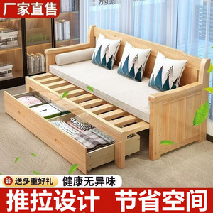 中国風ソファベッド無垢材ソファベッドオールインワン兼用座り寝兼用小型リビングルーム多機能格納式収納可能新