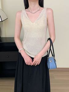 シングルウェア/レイヤードウェアともにOK〜ブロガースタイル テンセルリネンニットキャミソール Vネックインナー レディース 夏新作 G042911