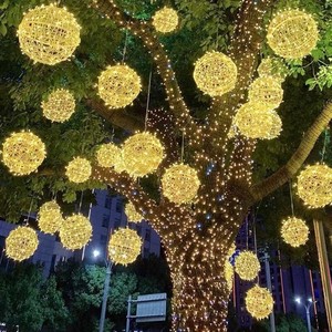 LED藤球灯は木の屋外防水街の景色を掛けて明るくします。