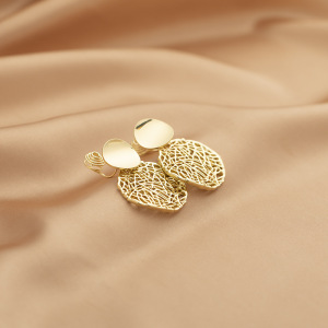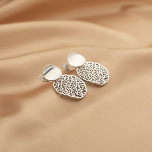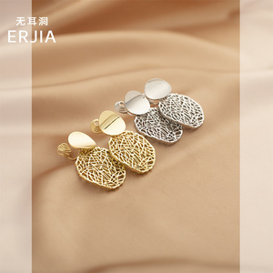 トレンディな新しいメタル中空サークルイヤリング、エレガントなヨーロッパとアメリカのデザイン、誇張された蚊よけのイヤークリップ、ピアスなし