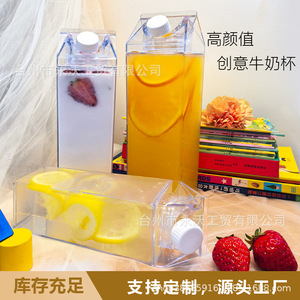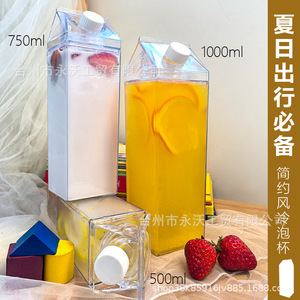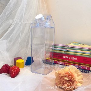 クリエイティブ漫画スクエアミルクカートン形状ウォーターカップ夏の外出家庭用透明大容量ポータブルジュースボックス