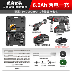 ブラシレス工業用グレード [ハンマー・グラインダー複合機 6.0AH バッテリー 2 個] + 無料の高級アクセサリー