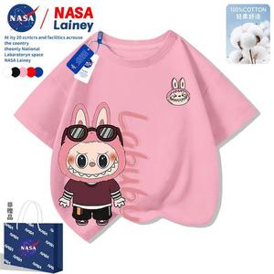 NASA labubu ラブブ半袖男の子と女の子の漫画 Tシャツ夏の新しいかわいいトップス多用途