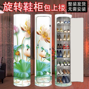 回転下駄箱円形360度縦型下駄箱多層収納下駄箱大容量多機能収納棚家庭用