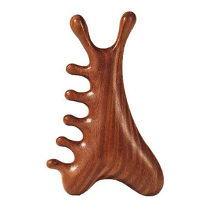 サンダルウッド 4-in-1 マッサージコーム、経絡コーム、ヘアセラピー、経絡浚渫、顔と目のサンダルウッドコーム
