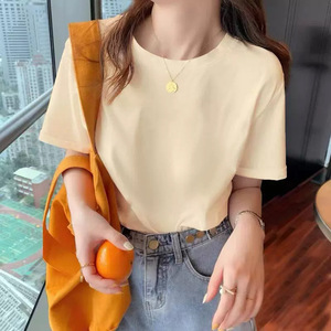 アプリコットショルダー半袖Tシャツ女性用2025夏の新しいファッションラウンドネックルーズスリムトップ
