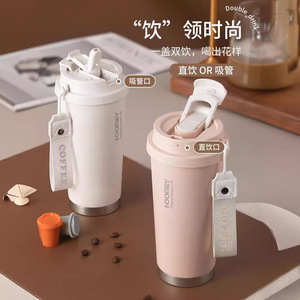 HOOMEYセラミック内胆コーヒーカップ女子学生高颜値ストロー水カップステンレスシームレス内胆カップ工場