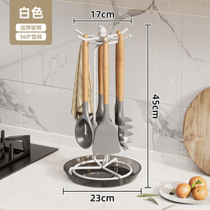 回転スパチュラ収納ラックキッチンカウンタートップ吊り下げスプーンとスパチュララックフックホルダーキッチン用品スプーン収納ラック