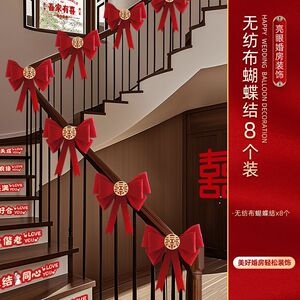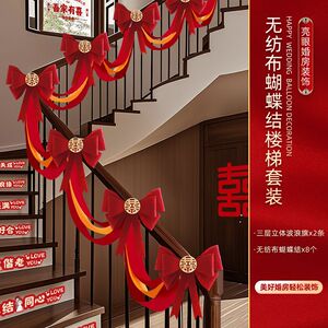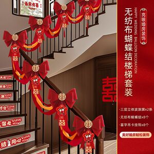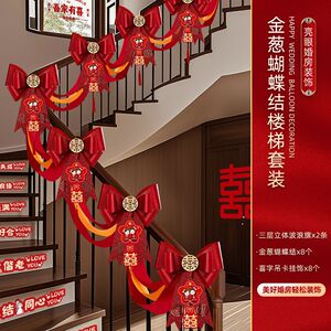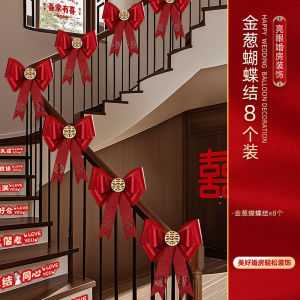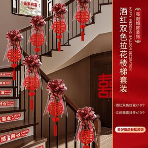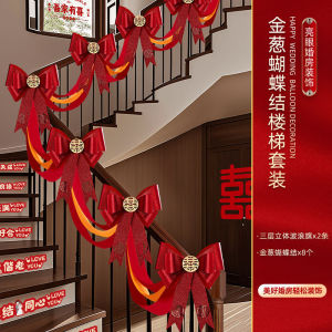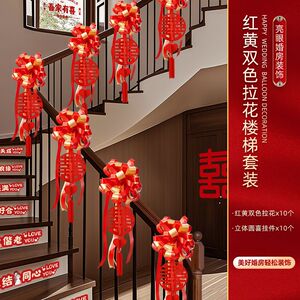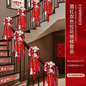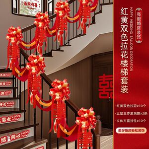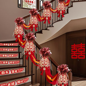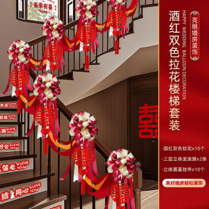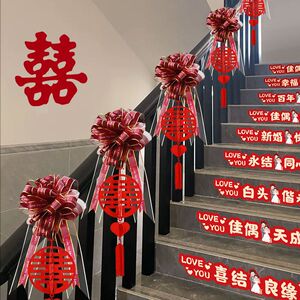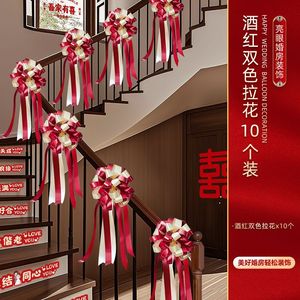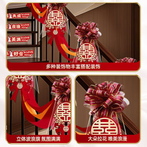 結婚階段手すり装飾結婚部屋配置セット男性の結婚式の喜字引き花彩帯結婚祝い用品大全