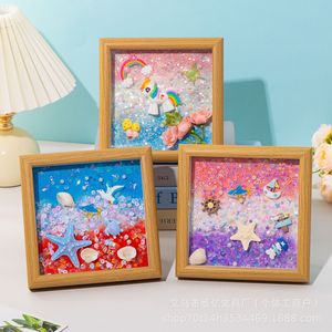 新しいクリエイティブ子供の木製 DIY 手作り材料パッケージおもちゃ材料パッケージフォトフレーム絵画手作りテクスチャ絵画