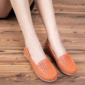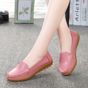 【5079人】本革フラット婦人靴、柔らかい靴底、中高年ママシューズ、カジュアルビーニーシューズ、妊娠中牛筋底