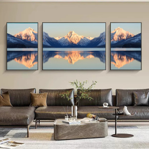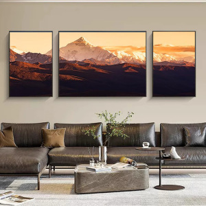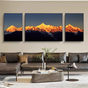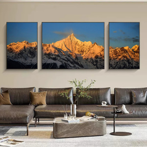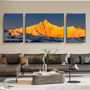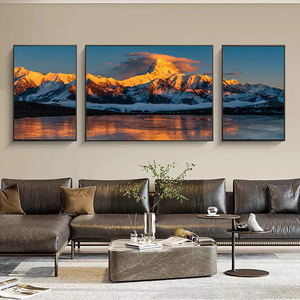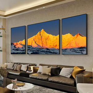 金山リビングルームトリプル装飾絵画メリ雪山ソファ背景壁画富を引き寄せる風景風景吊り絵画