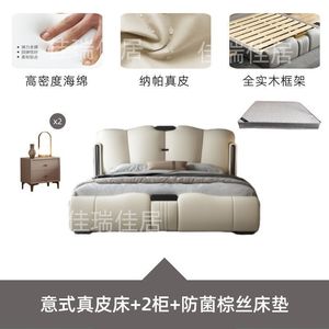 アップグレードされた外国貿易品質のクロスボーダーイタリア製レザーベッド + キャビネット 2 台 + 5 つ星のソフト弾性マットレス