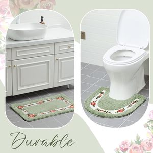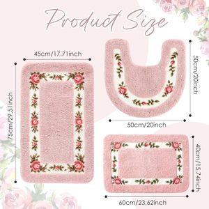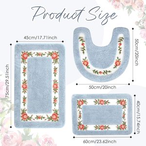 模造カシミヤ シンプル 無地 花柄 バスマット 浴室用 U字型トイレマット 吸水性滑り止めマット 3点セット