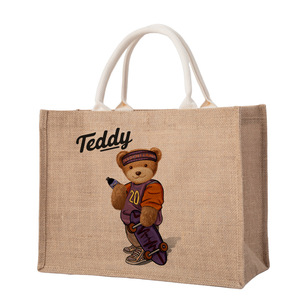 レトロな焼け麻生地の撥水性ジュートハンドバッグキャンプピクニックバッグは、写真とロゴ広告のカスタム印刷をサポートしています