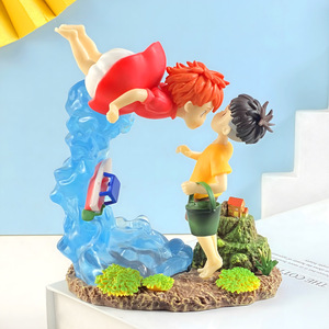 ポニョとゾンスケのシナリオフィギュア、岸辺のポニョ、崖の上のポニョ、卓上アニメーションオーナメント