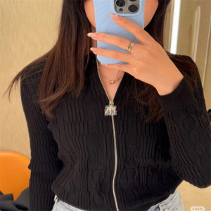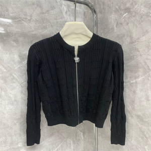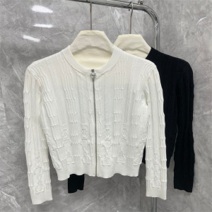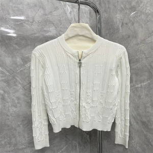 Nanyou高バージョン2025春夏新作気質立体チェーンレリーフ柄ラウンドネックジッパーニットカーディガン