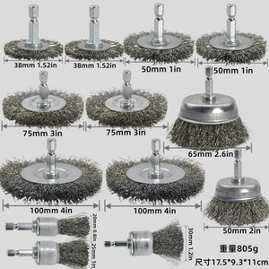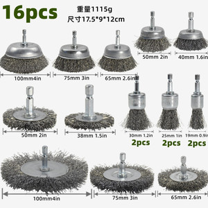 国境を越えたワイヤーブラシセット電気ドリルハンドル付きワイヤーホイール六角棒電気研削ブラシボウル型ステンレス鋼線研削ホイール