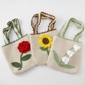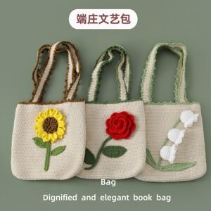 控えめな文学バッグ手織り完成品ひまわりショルダーバッグスズランハンドバッグレッドローズ知的バッグ