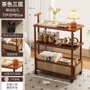 車輪付き収納ラック、可動トロリー、ホームリビングルームソファサイドテーブル、クリームスタイルの床置き型多層収納ラック