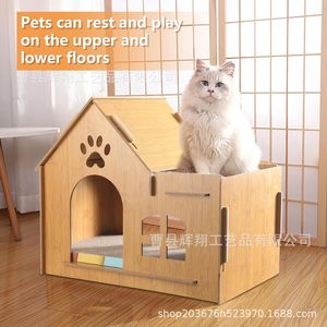 木製の猫の巣猫の生息地ペットの巣猫の家の室内の寝室のベッドのペットの別荘は四季を通じて通用します。