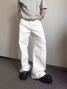 ナショナルトレンドホワイトアメリカンジーンズメンズルーズストレートパンツイントレンドブランド日本製シンプルワークウェアカジュアルパンツメンズ
