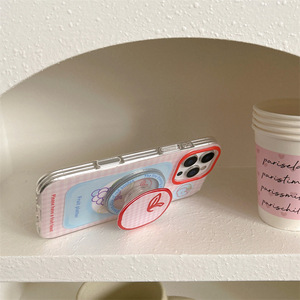 粉格线条水果盘磁吸支架适用iPhone16苹果15ProMax手机壳14小众13