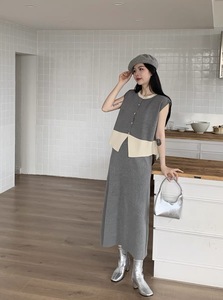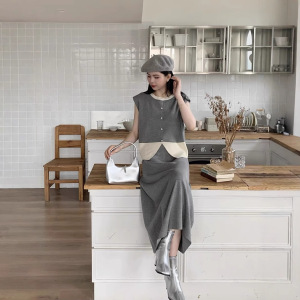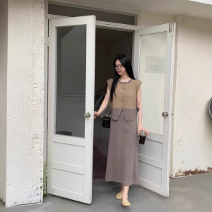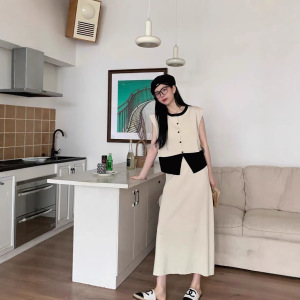 2025年新款设计感圆领拼接排扣针织衫女半身裙气质时尚百搭套装女