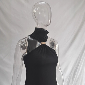 欧米の2025夏の新商品のファッション的な個性の金属ボタンの純色のガードルの高いウエストはお尻の袖なしのワンピースの卸売りを包みます。