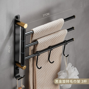 ブラックゴールドフル銅フックマルチロッドタオルラック3ロッド(パンチングなし/パンチング可)