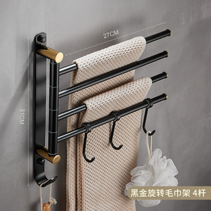 ブラックゴールドフル銅フックマルチロッドタオルラック4ロッド(パンチングなし/パンチング可)