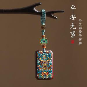 手工彩绘平安牌汽车钥匙扣挂件男女精致情侣创意高档可爱书包吊坠
