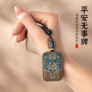 緑白檀塗装安全プレートハイエンド男性と女性の絶妙な車のキーホルダーレタリングペンダントバッグペンダント