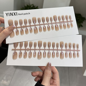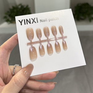 预制甲仙芋玻璃珠光猫眼精品穿戴式短椭圆美甲贴片ins风夏日新款