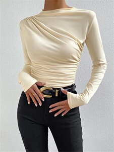 国境を越えた爆発金2025欧米の純色の修身シャツには、デザイン感のある長袖tシャツの女性の上着があります。