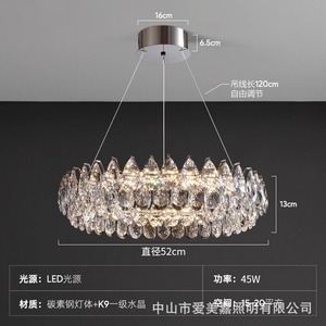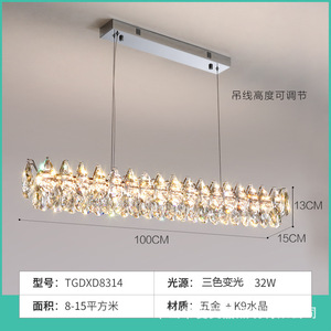 イタリアのライトラグジュアリーモダンクリスタルランプホームレストランシャンデリアハイエンドクリエイティブバーアイランドワンラインランプ中山