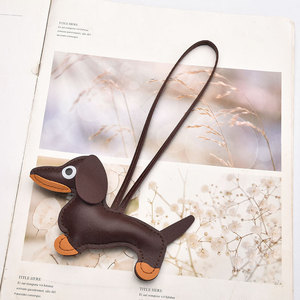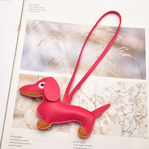ダックスフントキーホルダーペンダント漫画ペットバッグペンダントレザーキーホルダー携帯電話ケースバッグペンダント装身具