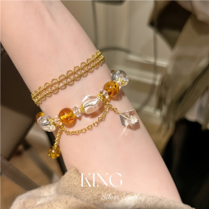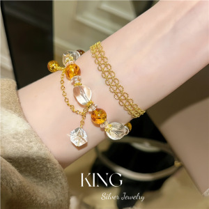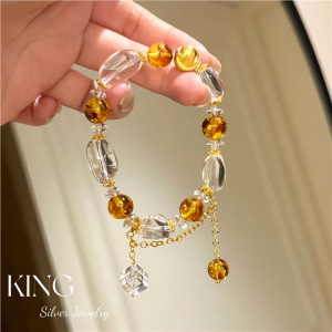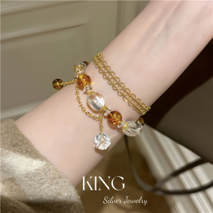 KING シルバージュエリー | アンバースノーブレスレット | S925 シルバー ゴールドメッキ スーパー ヘビー フラワー アンバー クリスタル レトロな気質の新しい中国風