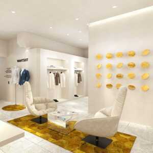 プロの靴と衣料品のブランドイメージストアディスプレイキャビネット、店舗全体のデザイン、塗装されたアイランドシェルフディスプレイスタンド、アイランドディスプレイキャビネット