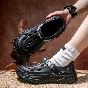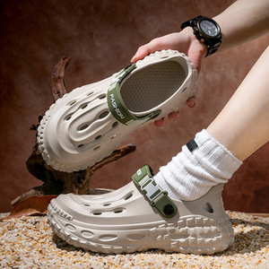 外国貿易は糞感のある洞靴を踏んでいます。男性は夏に包頭の厚い底のスリッパを履いて滑り止めをしています。