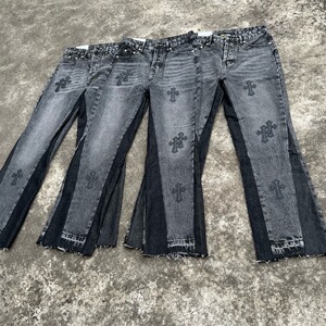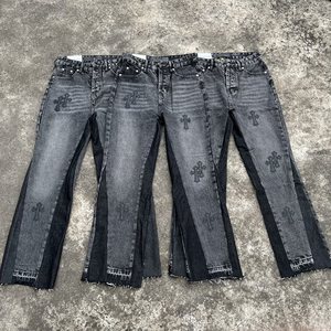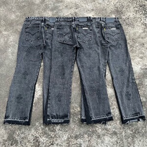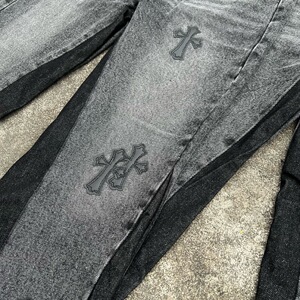 Chrome Hearts CHクロークジーンズは黒灰雪模様のクロスをつなぎ合わせてゆったりとした水洗いラッパを作ります。